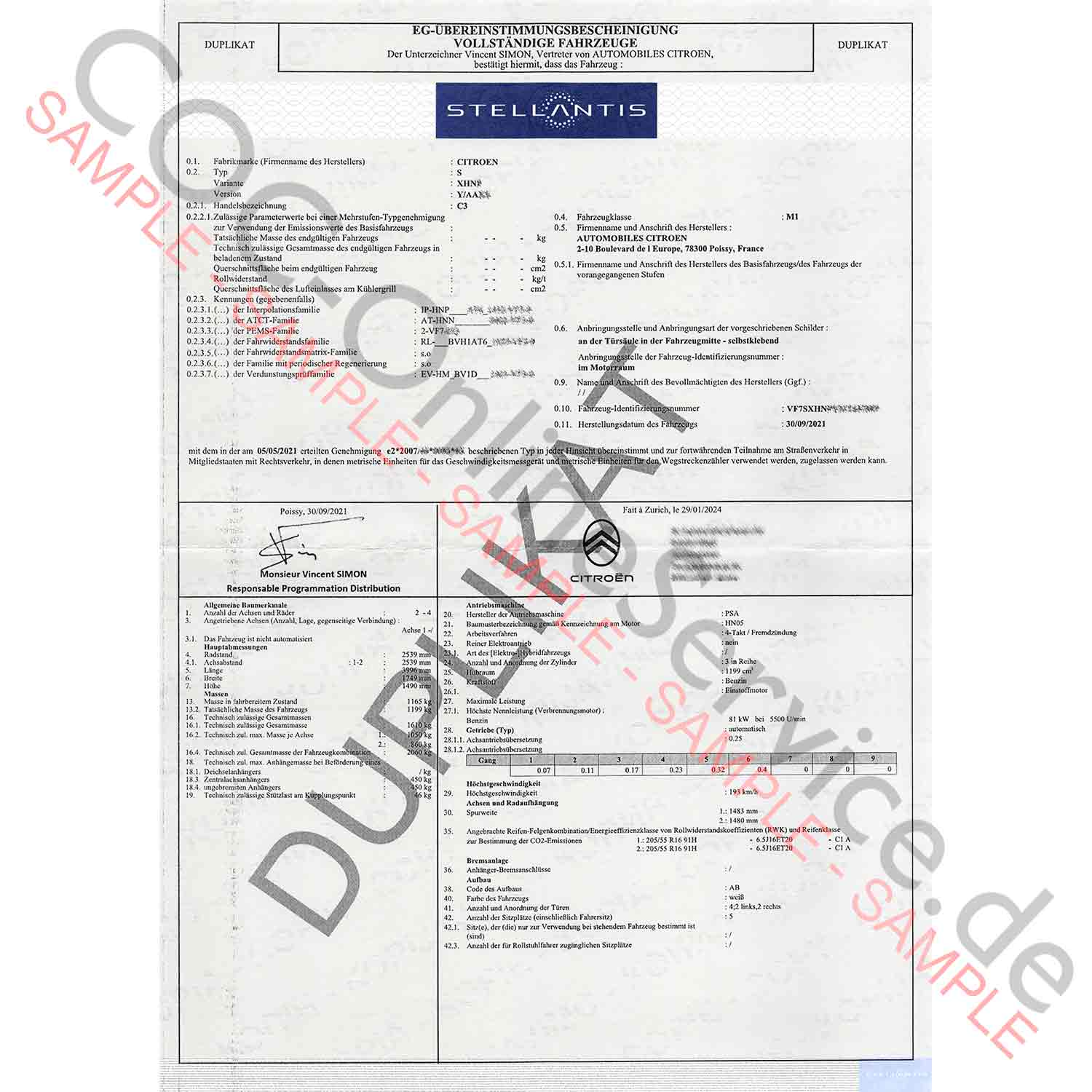 COC dokumenty pre Citroën (Certificate of Conformity)