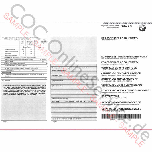 Každý COC je vydávaný výlučne priamo príslušným výrobcom. Pôsobíme ako sprostredkovateľ a zaručujeme pravosť a úradné uznanie v rámci EÚ.